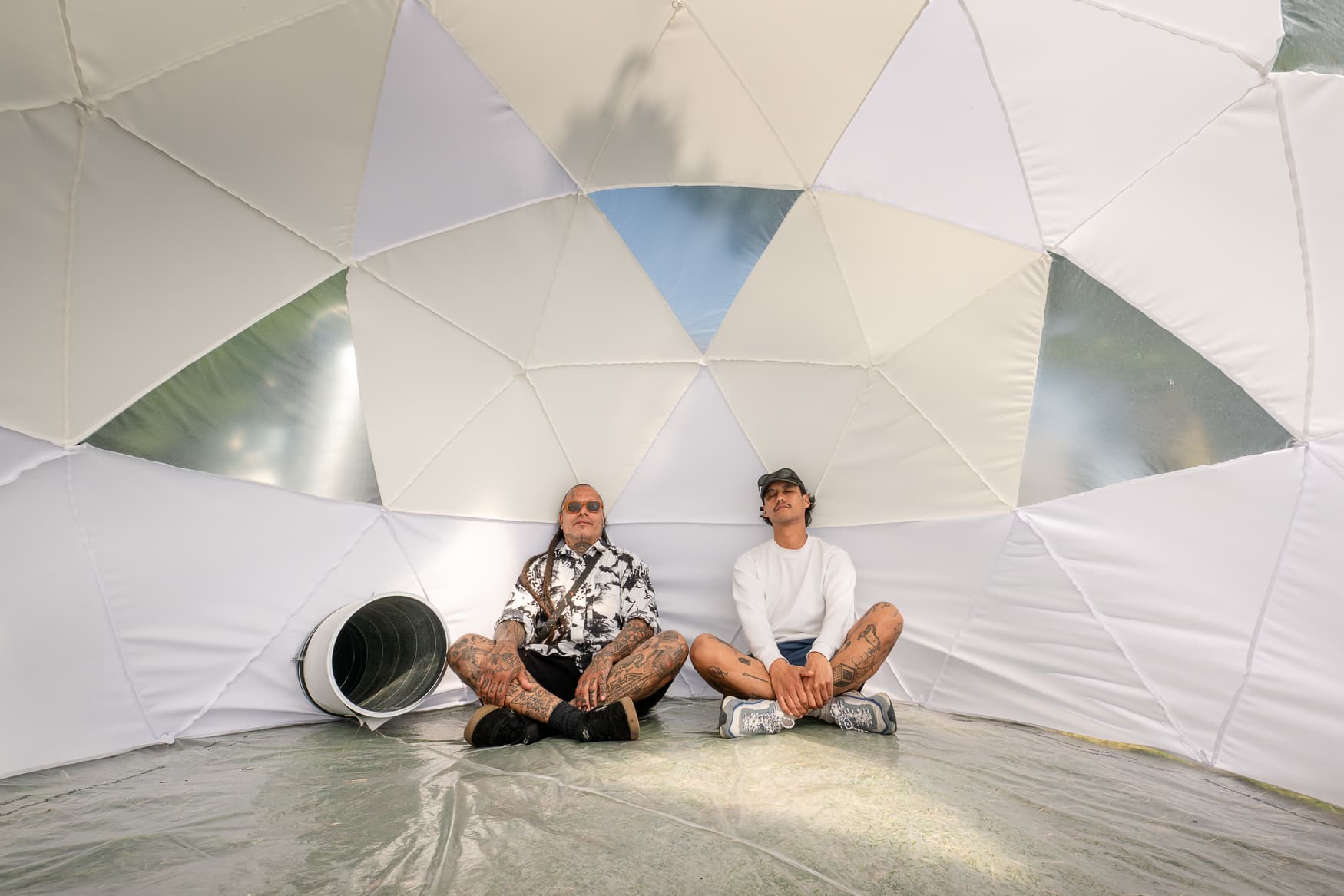This work engages with the hidden technologies that shape the climate of our time, focusing on conditioned and technologized air. Air conditioning systems form an invisible but central infrastructure in contemporary life. They symbolize a society increasingly isolating from its environment in pursuit of stable, controllable interiors, regardless of weather, place, or climate. While they may seem like markers of progress, on a global scale they represent an ecological and social dilemma. Air conditioning involves more than just cooling. It consumes energy, displaces heat, and emits greenhouse gases. The paradox of artificial cold reveals itself in two ways. First, in its energy demand, which is still largely met by fossil fuels, contributing directly to global warming and increasing the need for more cooling. Second, in its physical principle: air conditioners do not eliminate heat, they simply move it. What feels comfortable cool inside turns into external heat. This work brings that reality into physical form. Drawing from the world of climate technology, the structure is removed from its utilitarian context. What is usually hidden behind ceilings appears here as a sculptural object in public space. It no longer serves to isolate air, but shares it — as draft, as sound, as mist, as gesture, as encounter. It becomes a performative fragment of urban infrastructure in overheated cities. The installation functions, but it does not create comfort. Its technical components remain exposed and active: the hum of the motor, the flow of air, the shifts in temperature and humidity. Technology turns outward, transforming into a metaphor for something organic, almost human. A machine that breathes. Sometimes calm, sometimes stressed. It whistles when the wind touches it. It sweats under strong sun. It stirs pollen, it murmurs. In this way, it approaches the idea of atmospheric communication, echoing how animals express themselves through breath, temperature, and air. In urban life, we often treat air, temperature, and humidity as problems to solve: air conditioning for heat, filters for pollution. But in nature, these elements are expressive. Panting, sweating, puffing up - these are ways of showing presence, emotion, urgency. It’s a system that works, but not efficiently. A machine that breathes, as long as it has power.