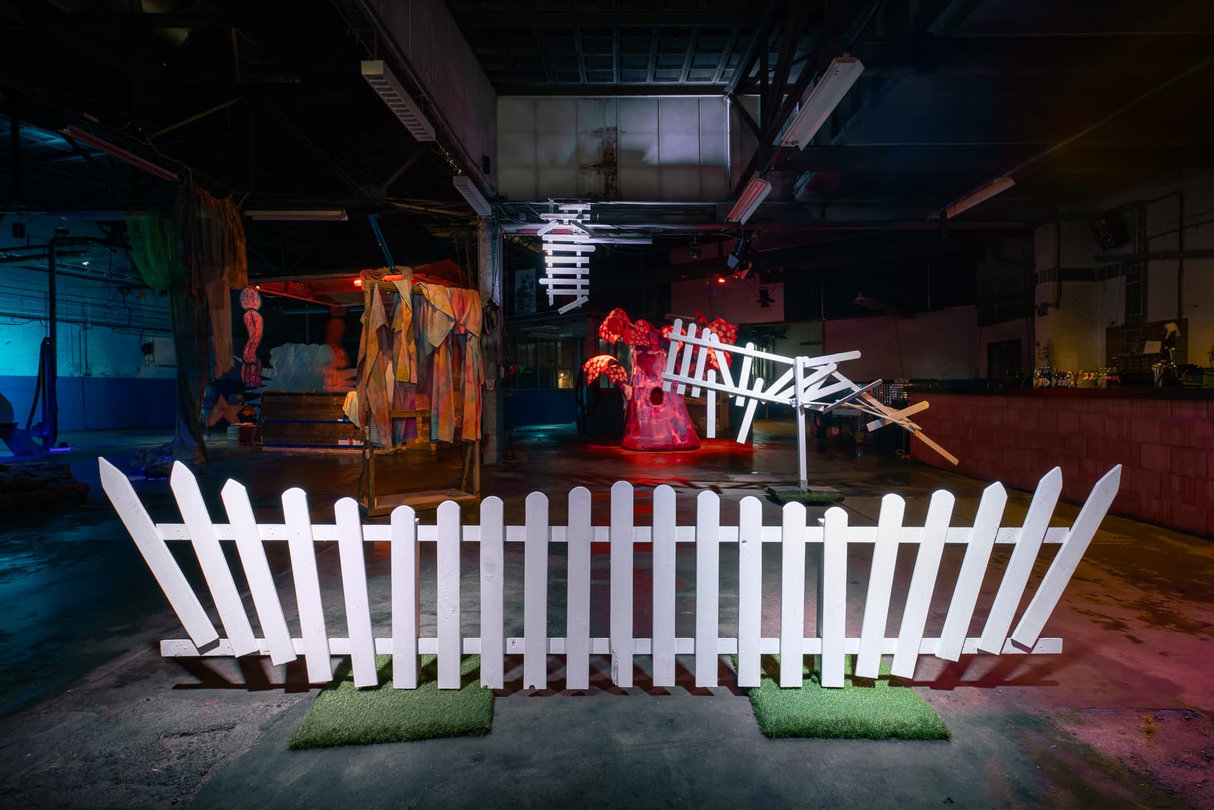 “Kaputte Grenzen”, Wood, electric turn tables, 3,6m. Fences are strange constructions. Some merely divide two neighbors’ gardens; others enforce national borders, restricting movement and access. Despite their scale or intention, all fences share a fundamental trait: they interrupt continuity. They are manmade structures designed to divide landscapes, bodies, and flows. Yet even the most imposing fence contains its own contradiction. Between the metal bars, wooden slats, or coils of barbed wire, there are always gaps, small openings that allow us to see through, reach across, or pass over. These irregularities, often overlooked, are what interest me most. This work explores the idea that no fence is absolute. I am not concerned with tearing them down, but rather with the subtle, often invisible ways they can be negotiated and bypassed. I aim to highlight the quiet moments of resistance, where presence and movement assert themselves against imposed boundaries. I am particularly interested in the fleeting moments where individuals reclaim restricted or overlooked spaces - not through confrontation, but through ingenuity and movement. Rather than dismantling the fence, I look for the holes already there, those informal, often ephemeral openings that offer passage and agency. Through this piece, I want to prove that every fence carries within it the possibility of being overcome, not by force, but by awareness, creativity, and the will to look for what’s hidden in plain sight.