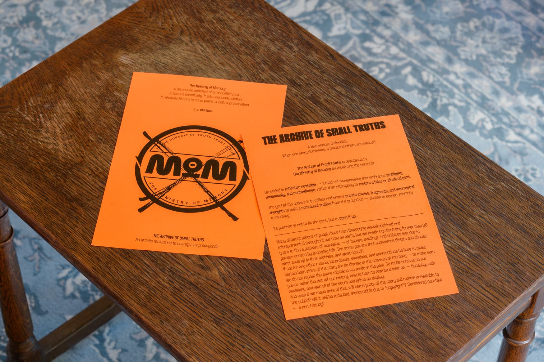 “The Imperfect Room of Imperfect Memory” is a multimedia installation that explores the nature and fragility of nostalgia and memory. Drawing from the artist’s personal fascination with and struggle against nostalgia, the work invites viewers into a layered sensory environment: a set-like room composed of looping videos of 3D-scanned spaces displayed on a CRT monitor, in unison with personal stories broadcast on a nearby radio—each linked to the environments being shown. The “Room” itself is assembled from carefully selected pieces of old furniture, juxtaposed with printed-out artifacts found within the 3D scans of the artist’s past. These printed objects are blurry, pixelated, and hold no tactile resemblance to what they represent or what they physically rest against. They appear disconnected from the space around them—glitchy, unrendered fragments from a dream or a fading memory—inviting the viewer to interpret them as visual metaphors for forgetting, distortion, and emotional distance. Visitors are invited to sit in an armchair facing the CRT monitor, flanked by an old radio, and stay for as long as they like. The heart of the installation is a set of looping videos of four different 3D-scanned rooms from the artist’s past—spaces like his grandparents’ childhood home and the attic of his own. Each video is paired with an accompanying story broadcast over the radio, written by the artist and narrated by different voices—family members and close friends—each connected to the room being depicted. The stories were recorded via phone calls, a deliberate choice that adds a layer of grainy intimacy and emotional distance, underscoring the work’s central themes of nostalgia, memory, and the fading clarity of personal history.