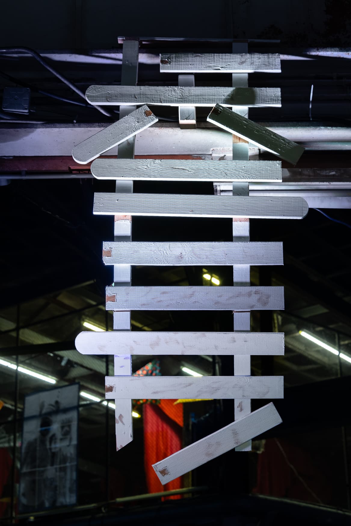 “Kaputte Grenzen”, Wood, electric turn tables, 3,6m. Fences are strange constructions. Some merely divide two neighbors’ gardens; others enforce national borders, restricting movement and access. Despite their scale or intention, all fences share a fundamental trait: they interrupt continuity. They are manmade structures designed to divide landscapes, bodies, and flows. Yet even the most imposing fence contains its own contradiction. Between the metal bars, wooden slats, or coils of barbed wire, there are always gaps, small openings that allow us to see through, reach across, or pass over. These irregularities, often overlooked, are what interest me most. This work explores the idea that no fence is absolute. I am not concerned with tearing them down, but rather with the subtle, often invisible ways they can be negotiated and bypassed. I aim to highlight the quiet moments of resistance, where presence and movement assert themselves against imposed boundaries. I am particularly interested in the fleeting moments where individuals reclaim restricted or overlooked spaces - not through confrontation, but through ingenuity and movement. Rather than dismantling the fence, I look for the holes already there, those informal, often ephemeral openings that offer passage and agency. Through this piece, I want to prove that every fence carries within it the possibility of being overcome, not by force, but by awareness, creativity, and the will to look for what’s hidden in plain sight.