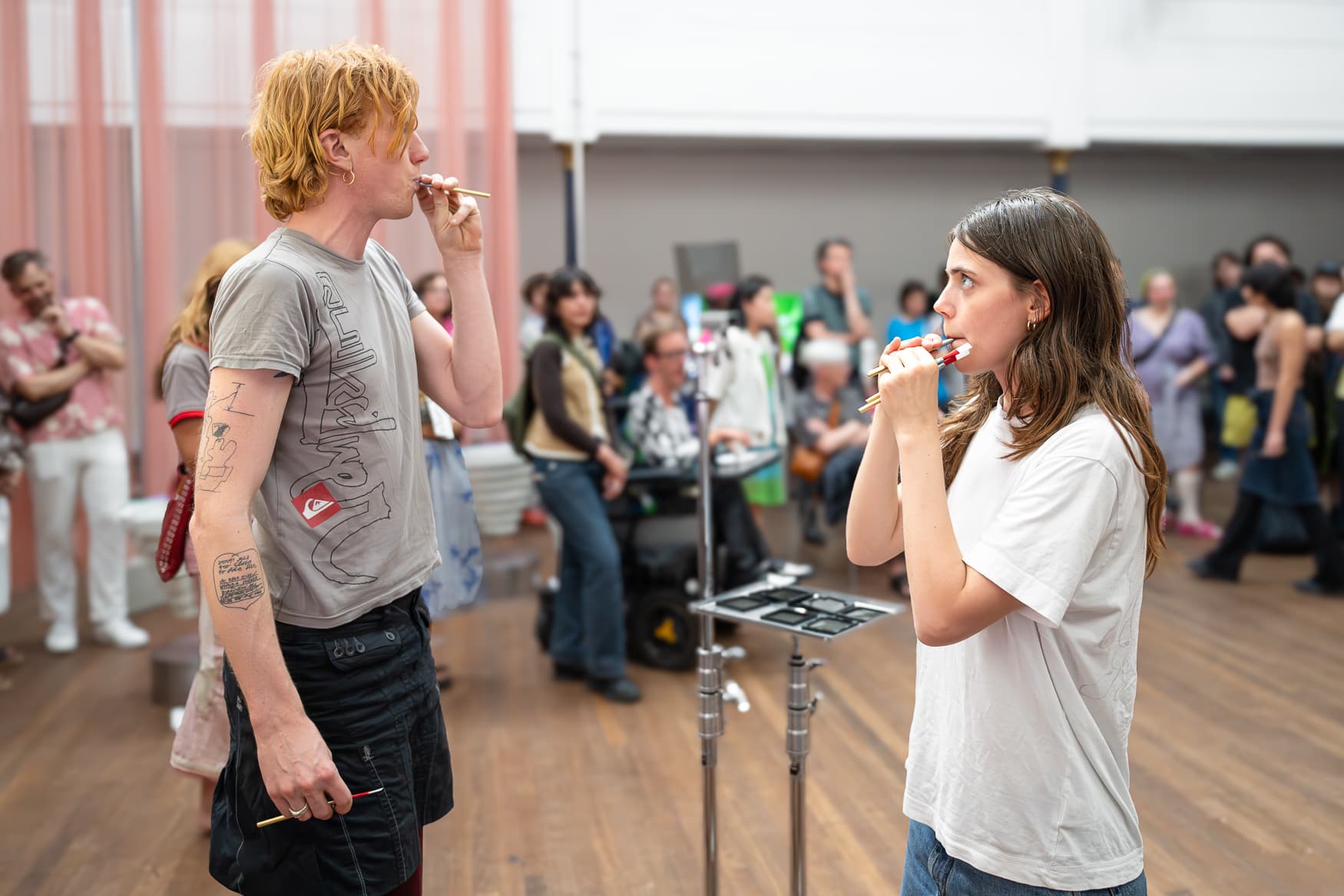 Mel Keane is a composer, visual artist, and designer from Dublin, currently based in Amsterdam. His work draws from the Irish pipe band tradition—embracing, interrogating, and rejecting its sonic and cultural properties. His interdisciplinary practice spans instrument making, graphic notation, choreography, and composition.