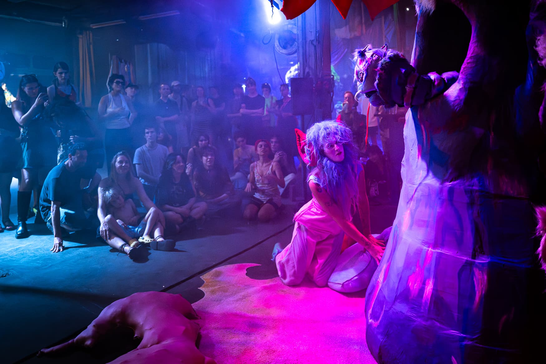 Livia Bertacca is a multidisciplinary artist currently based in Amsterdam. Drawing inspiration from feminist sci-fi fiction, fantasy culture and worldbuilding methodology, their research explores the free play of imagination and fantastical language as accessible, anti-capitalist and anti-patriarchal tools. Using puppetry, theatrical performance and collective storytelling, they create fantastical scenarios and immersive sets designed to be collectively inhabited, activated and experienced.