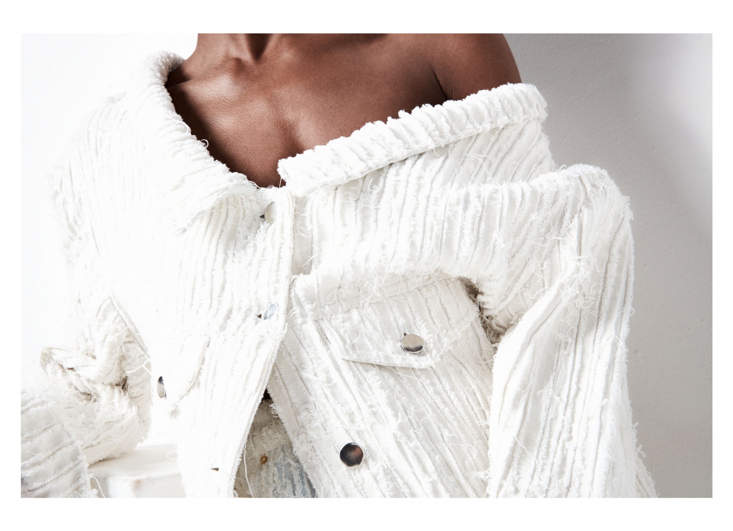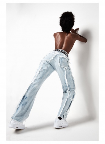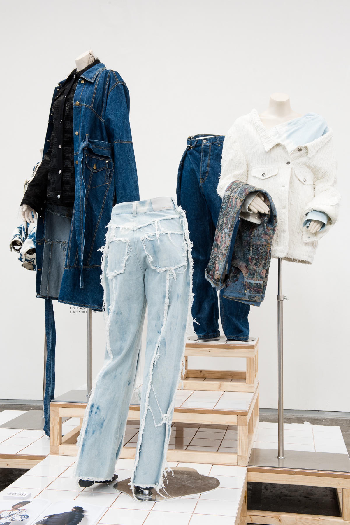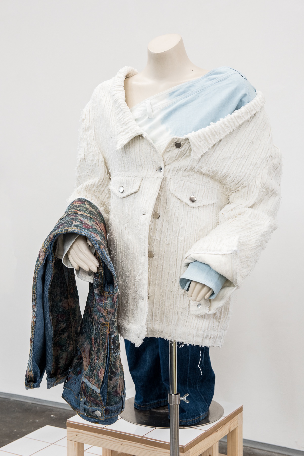 Fien's research work became a productive and emotionally involved experience when she realized her lifelong fascination with physical transformation and extreme body shapes, could be applied to fashion design with the same intent to create a higher self-esteem that she has been obsessed with since early on in life. With her thesis project, UNDER CONSTRUCTION, Fien deconstructs garments entirely made out of denim, the same way a surgeon operates human bodies.