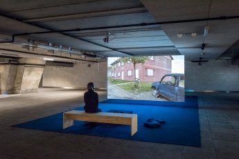 The profession of military policeman is permeated with layers of role-playing, which together with performance, re-enactment and fiction form the central themes of my thesis research. One part of the research resulted in the video work 'A couple driving a car along the countryside' which is set in a military training village. In this experiment I asked the actors to improvise on the script, emphasising the role of text and voice. While at the same time driving a route in a lemniscate shape.